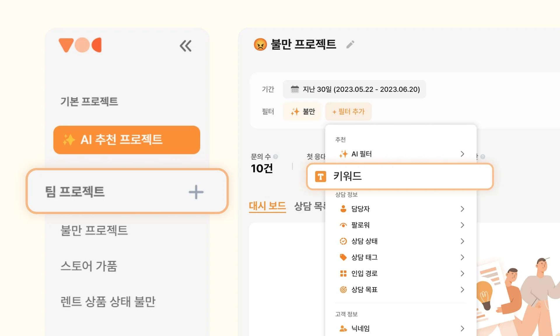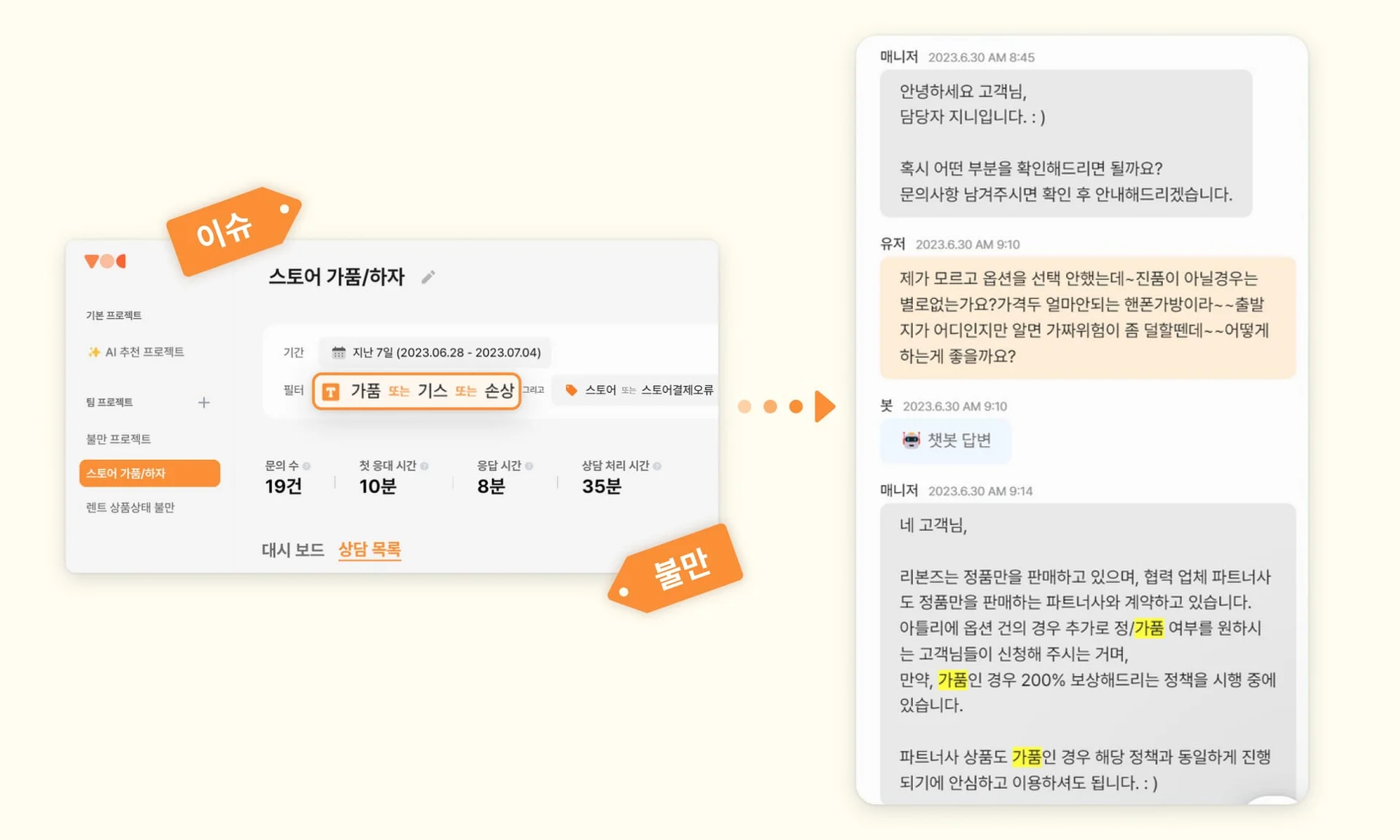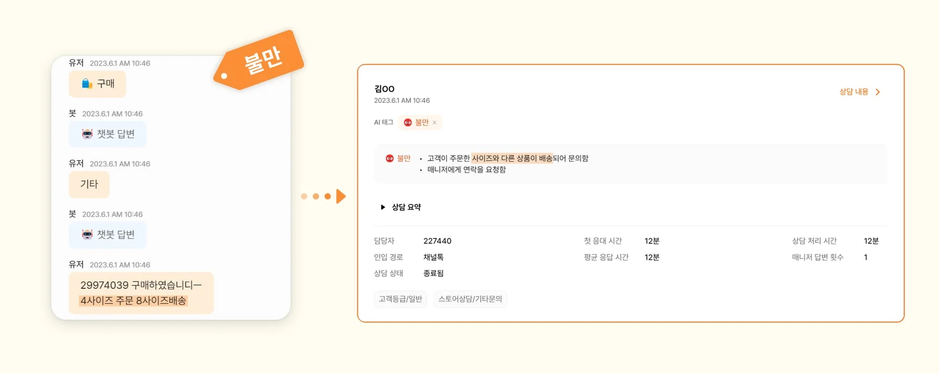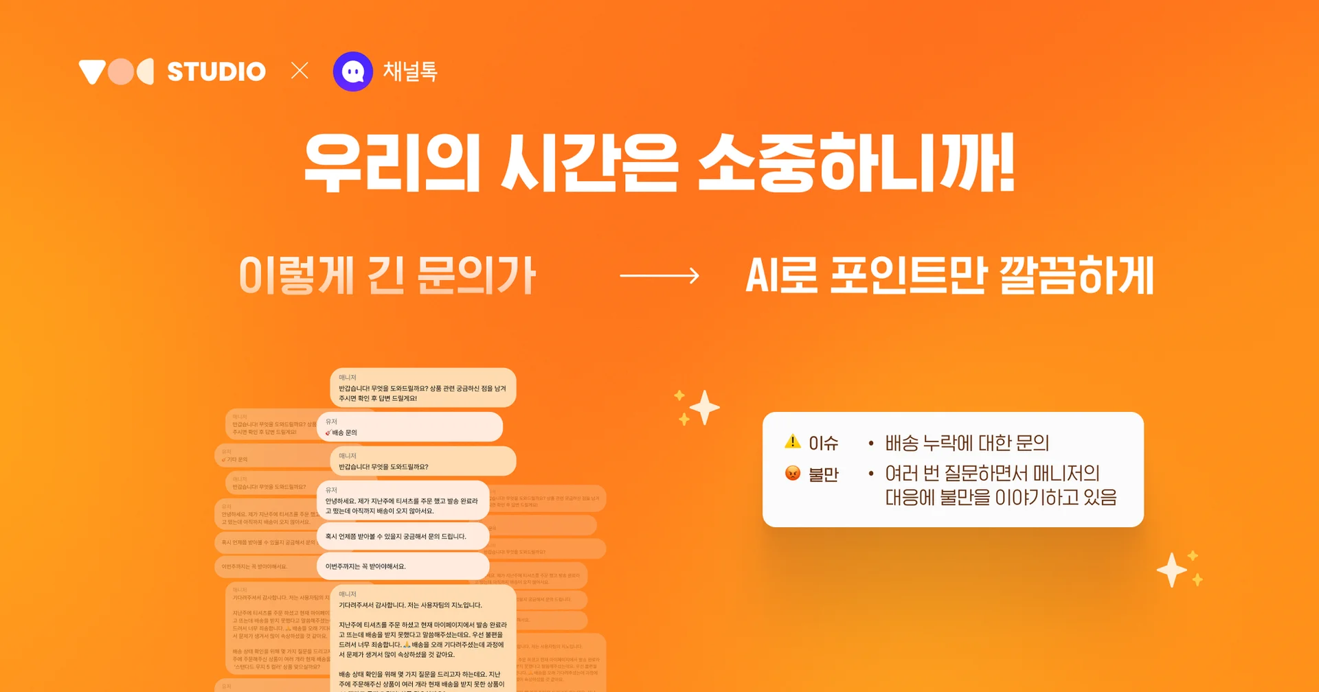 이슈를 발견하는 데 아주 효과적이에요! 상담 데이터를 숫자로만 보다 보면 전체 문의량이나 전체 주문 건수에 묻혀서, 중요한데 티가 나지 않는 문제들이 있거든요. 실제로 VOC스튜디오 도입 후 2건의 이슈를 발견해서 바로 해결했습니다!