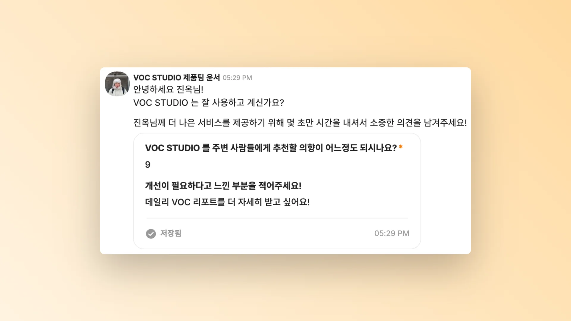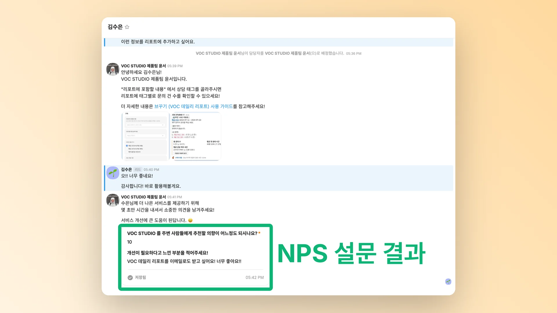 VOC STUDIO 의 상담 테이블 기능은 예림님의 고민을 말끔히 해결해주었습니다.